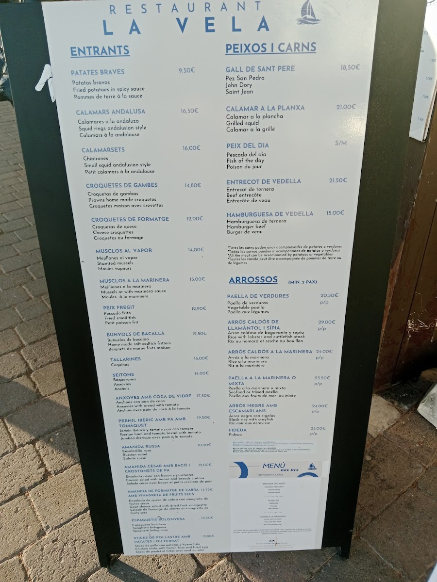 The highlight lies in their expertly grilled fish—turbot and sea bass—paired beautifully with roasted vegetables, showcasing a perfect balance of smoky and fresh notes. The inclusion of smoky chargrilled chicken adds variety for meat lovers, while dessert options like the creamy crema catalana provide a delightful finish. Attentive and kind service enhances the overall experience, making La Vela not just a meal, but a moment to savor Mediterranean tradition against a breathtaking coastal backdrop.